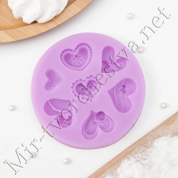Молд силиконовый, 9,5х9,5х1 см "Сердца ажурные" 3624575