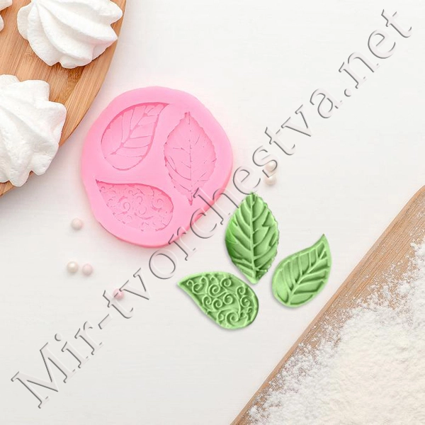 Молд силиконовый, "Листочки с узорами" 3 предмета 0.8x7.6x7.2см, (4288396/6946479)