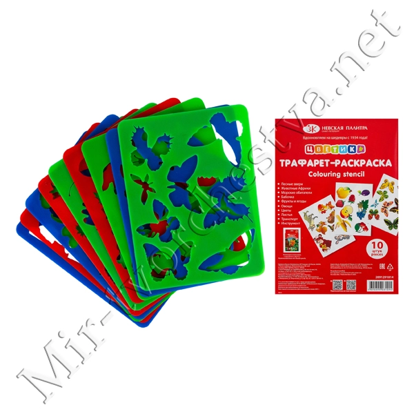 Трафарет-раскраска, 15,5х20 см, набор 10 шт., Цветик