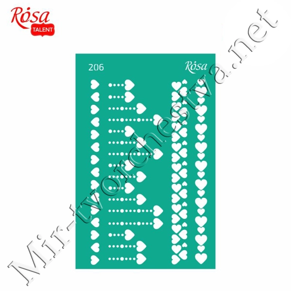 Трафарет многоразовый самоклеющийся, Бордюрный 13*20 см, №206, Серия "Влюбленные сердца", ROSA TALENT