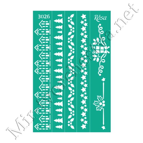Трафарет многоразовый самоклеющийся, Бордюрный 13*20 см, №3000, Серия "Новый год" ROSA TALENT