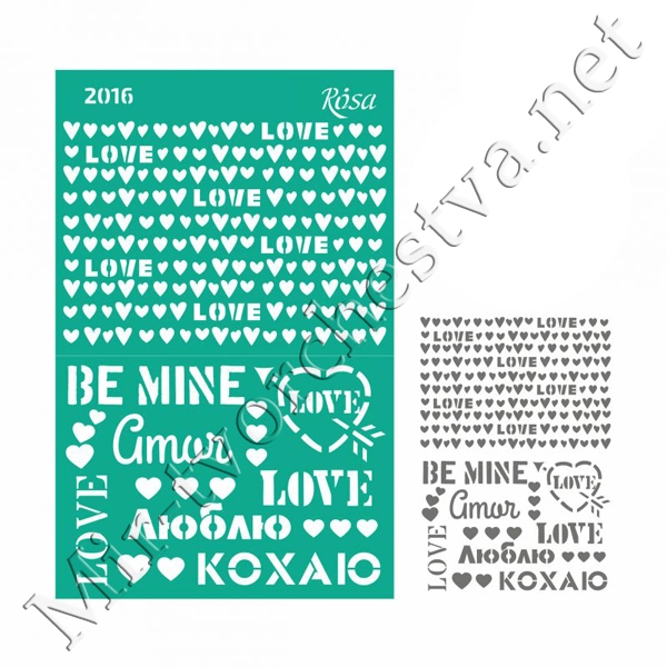 Трафарет многоразовый самоклеющийся 9*10 см, №55, серия „Love“, ROSA TALENT