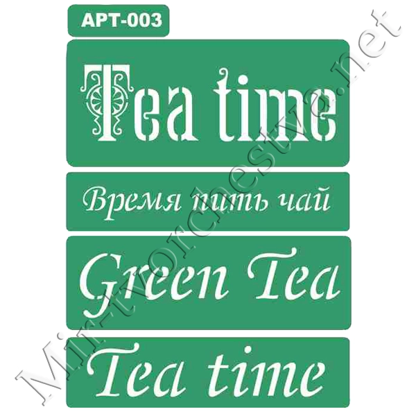 Трафарет самоклеющийся многоразовый, 14х19см № 003, ПРИГЛАШЕНИЕ НА ЧАЙ(надпись)