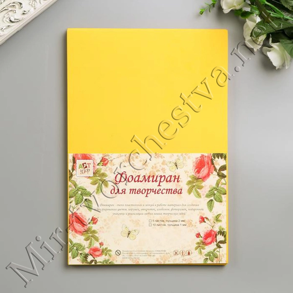 Фоамиран 1мм, "Лимонный", А4, Арт Узор