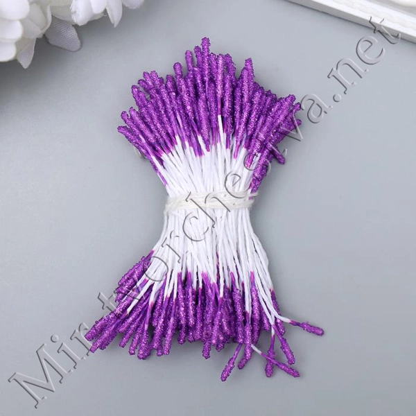 Тычинки для искусственных цветов "Капельки глянец фиолетовые" (набор 300шт.) длина 6см