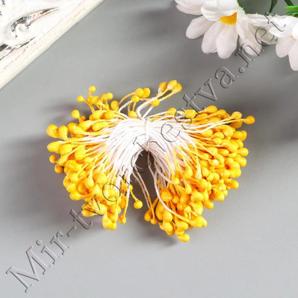 Тычинки для искусственных цветов "Капельки тёмно-жёлтые" (набор 130шт.) длина 6см