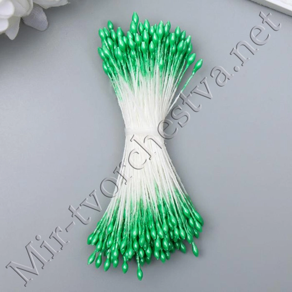Тычинки для искусственных цветов "Капельки глянец салат" (набор 300шт.) длина 6см