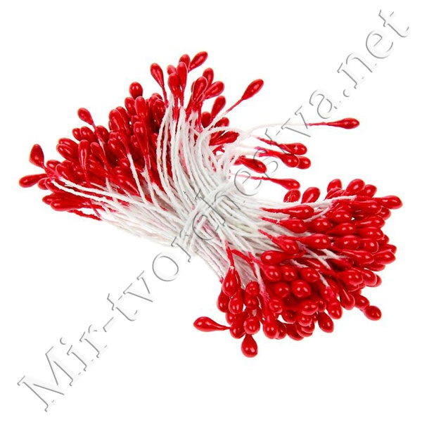 Тычинки для искусственных цветов "Капельки бордовые" (набор 130шт.) длина 6см