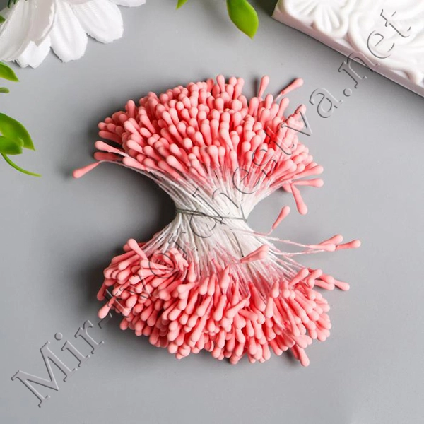 Тычинки для искусственных цветов "Капельки матовые розовая пастилай" d=1.5мм (набор 400шт.) длина 6см