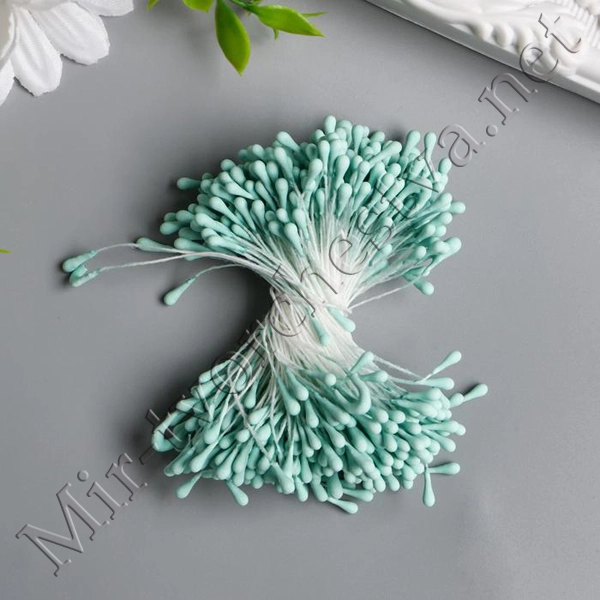 Тычинки для искусственных цветов "Капельки матовые Тиффани голубой" d=1.5мм (набор 400шт.) длина 6см