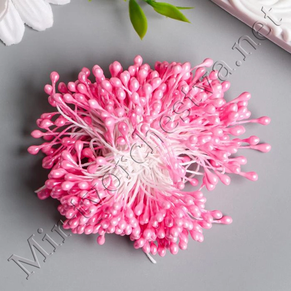 Тычинки для искусственных цветов "Капельки глянец ярко-розовый" (набор 300шт.) длина 6см