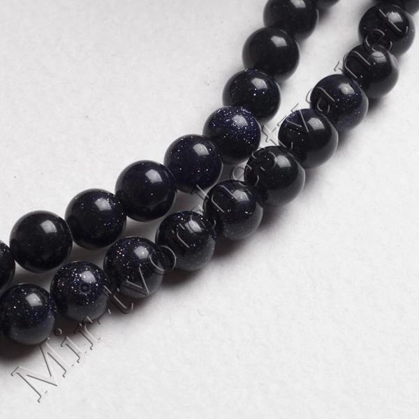 Бусины на нити шар №8 "Авантюрин синий" (48 бусин)