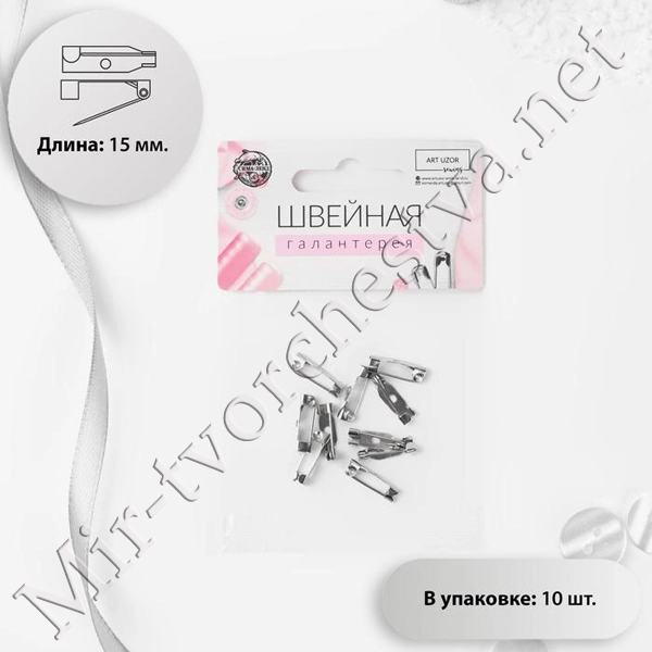 Основа для броши, 15мм, 2 отверстия, 10шт., цвет Серебряный