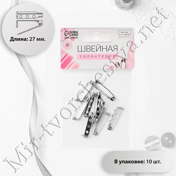 Основа для броши, 27мм, 3 отверстия, 10шт., цвет Серебряный