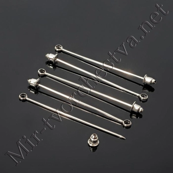 Основа "Брошь-игла" с шариком d=1см (набор 5шт.), L=7 см, площадка 1.5см, цвет Серебро