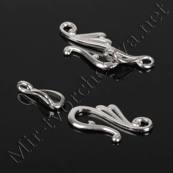 Замок-крючок с ответной частью "Завитки" 5373, (набор 2шт), цвет серебро