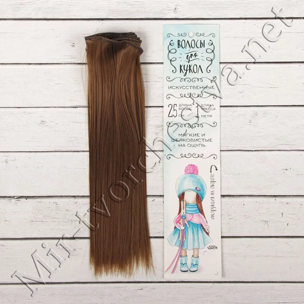 Волосы - тресс для кукол «Прямые» длина волос: 25см, ширина: 100см, цвет № 30В т.каштан