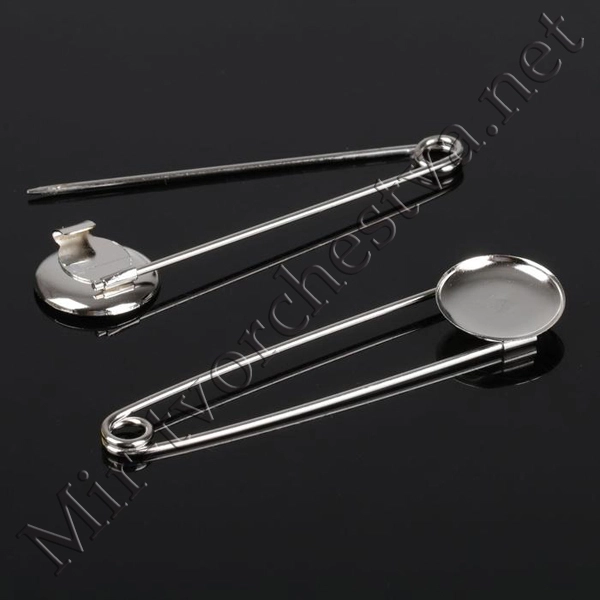 Основа для булавки (набор 3шт.), L=7см, площадка 1,9см, цвет Серебро