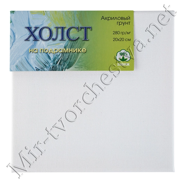 Холст на подрамнике, 20*20 см, 100% хлопок, 380 г/м2, среднее зерно, Сонет