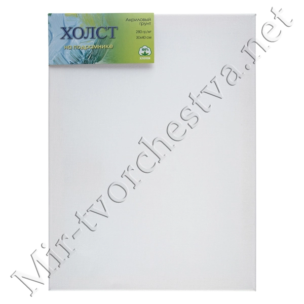 Холст на подрамнике, 30x40 см, 45% хлопок, 55% лен, 280 г/м2, прозрачный акриловый грунт, мелкое зерно, Ладога