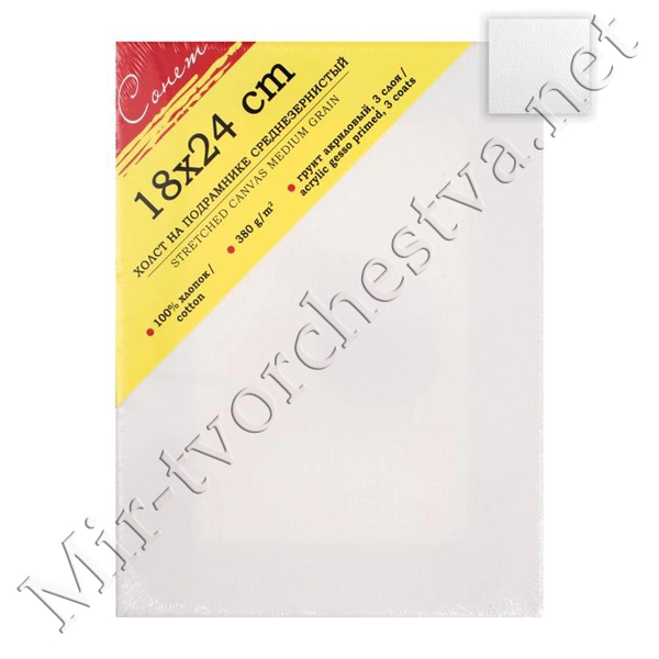 Холст на подрамнике, 18*24 см, 100% хлопок, 380 г/м2, среднее зерно, Сонет