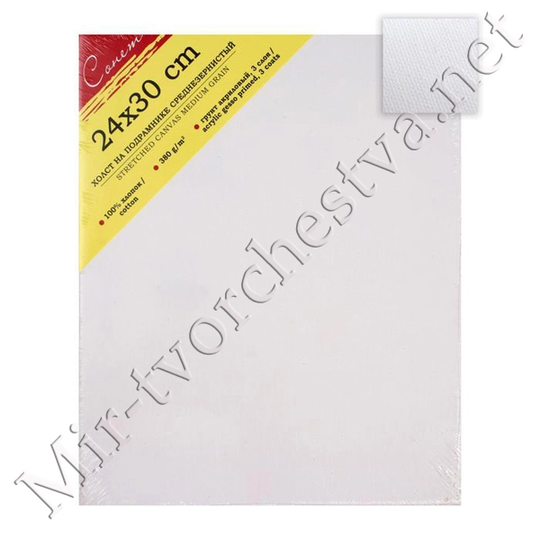 Холст на подрамнике, 24*30 см, 45% хлопок, 55% лен, 380 г/м2, Среднее зерно, Сонет